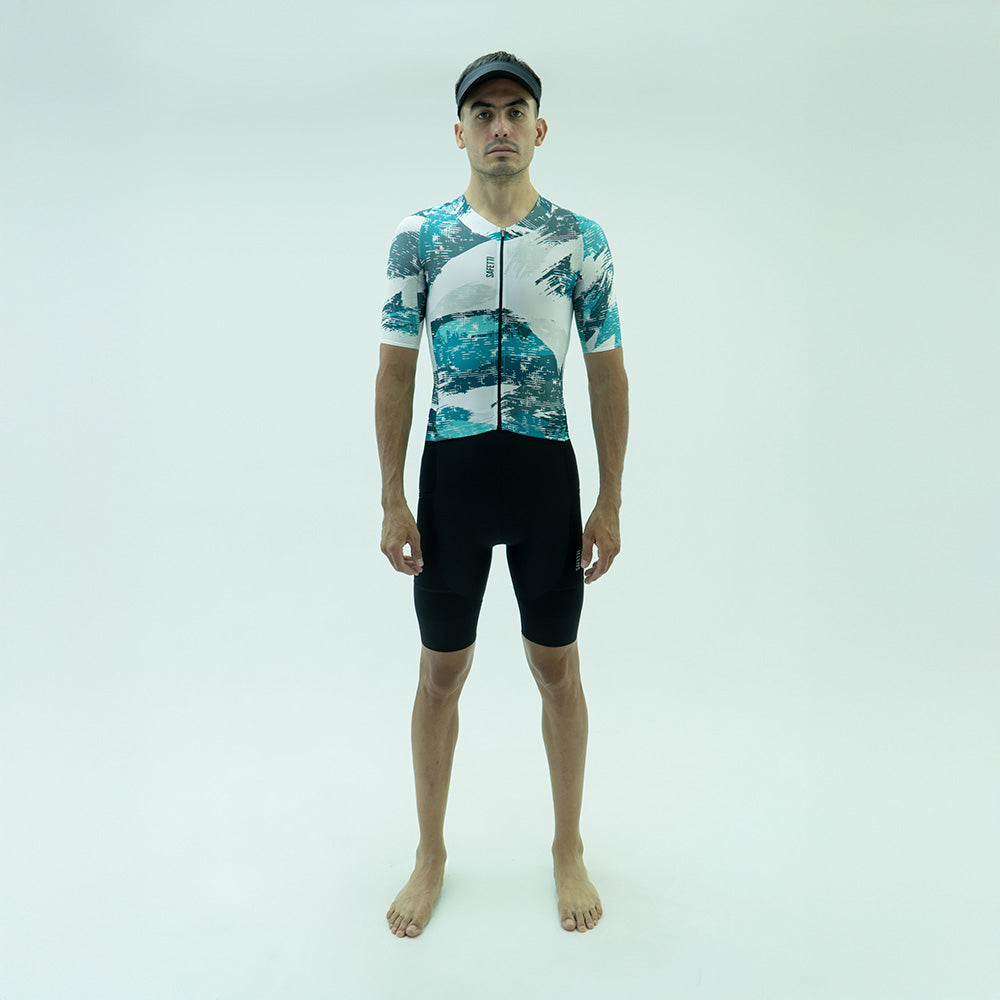 Combina tecnologías avanzadas para maximizar el rendimiento y la comodidad del atleta. Su tejido AquaZero™ ofrece excelente repelencia al agua, baja absorción y resistencia al desgaste, incluso tras lavados repetidos. En la parte inferior, el tejido Kinesis con tecnología DRY™ patentada aporta características hidrofóbicas, transpirabilidad y durabilidad, garantizando un desempeño óptimo en condiciones exigentes. Incorpora un cierre fijo delantero y bolsillos laterales de malla abierta para mayor funcionalidad. La banda GCC (Gripper Clean Cut Power Band) asegura un ajuste firme y cómodo. Además, cuenta con una badana italiana diseñada específicamente para triatlón, que proporciona soporte anatómico en puntos clave, construida con materiales de rápida absorción, transpirabilidad, propiedades antibacterianas y una excelente capacidad de elongación, adaptándose a los movimientos del deportista. Las tintas utilizadas en el diseño son libres de componentes azoicos (Azo Free), priorizando la sostenibilidad y el cuidado del medio ambiente.
