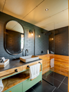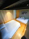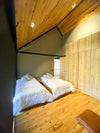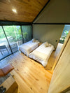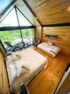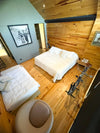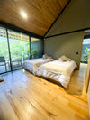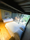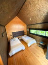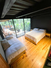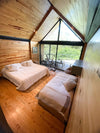 Y una habitación en cabaña independiente equipada con dos camas sencillas; closet, baño y deck privado.